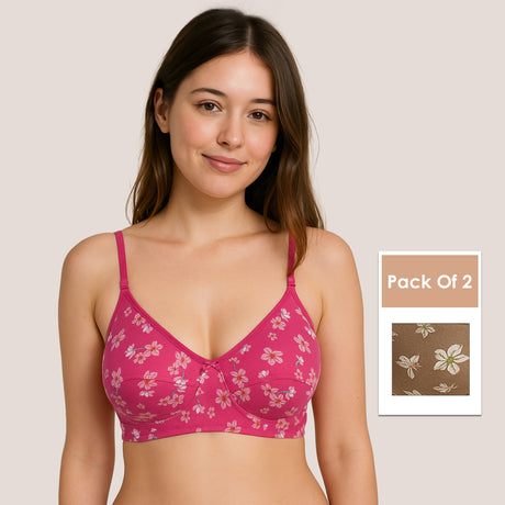 Stylish Printed Seam Bra for Women Soft Support & Everyday Comfort BQ2186 Pack of 2