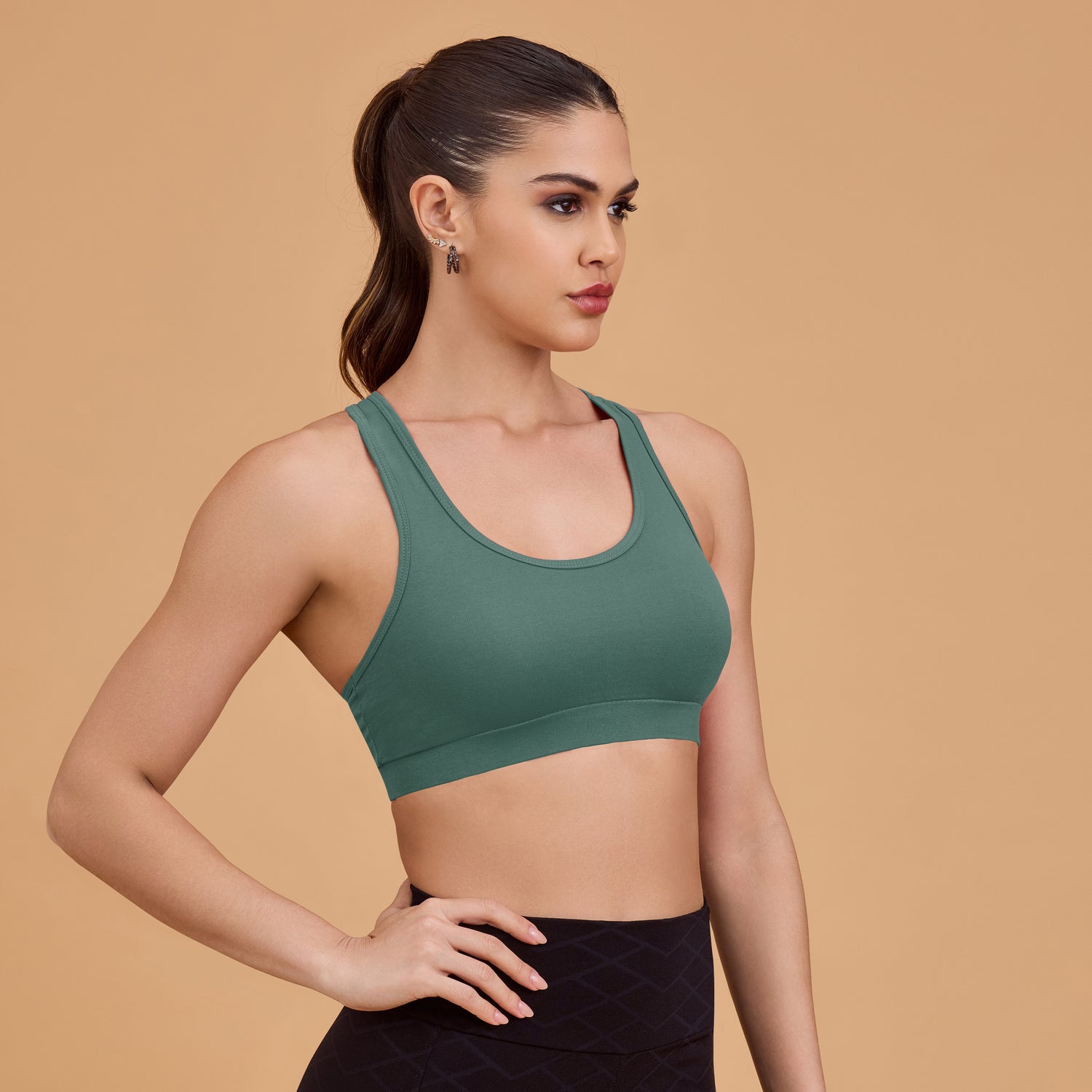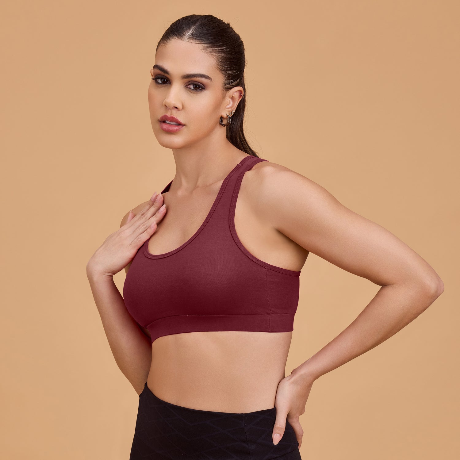 Medium Impact Racerback Sports Bra – Seamless, Breathable, Supportive SQ1028 - 30B / Black is backordered and will ship as soon as it is back in stock.